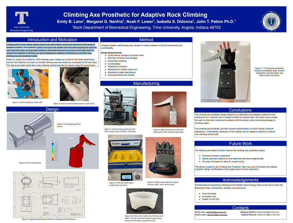 Climbing Axe Prosthetic for Adaptive Rock Climbing Climbing tools on the market require users to be able-bodied, and do not account for